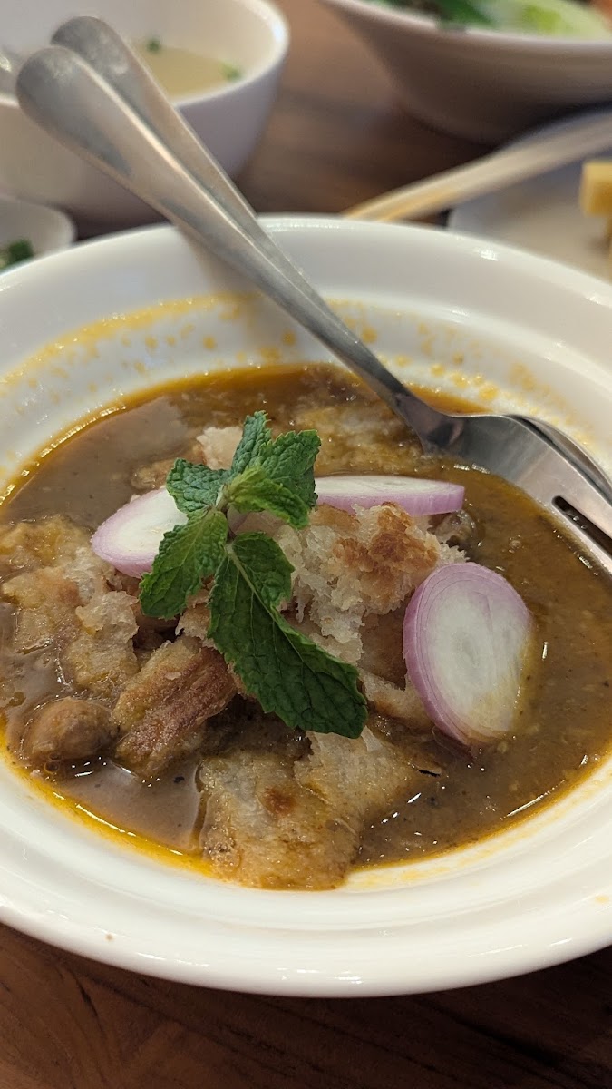 The taste of the meal was exactly what I wanted, so I felt satisfied. While eating the "Tofu Nway," I was reminded of my home country for a while. "A Kyaw Sone" is definitely worth the price. Although the sauce wasn't quite to my liking, it was still acceptable. Overall, I thoroughly enjoyed my meal.